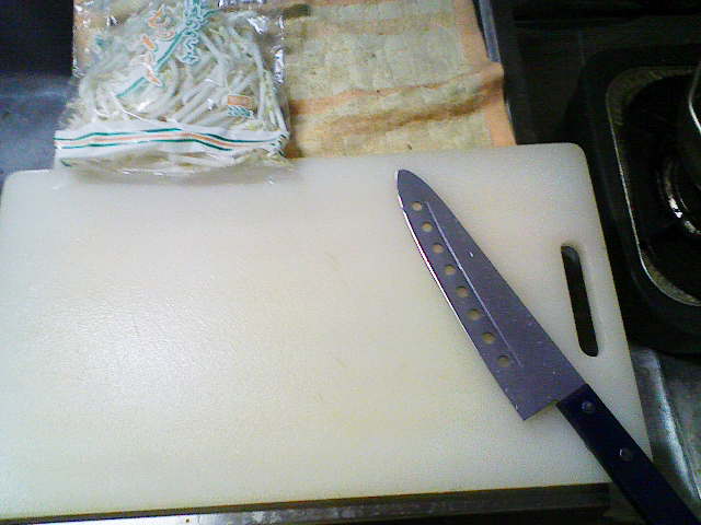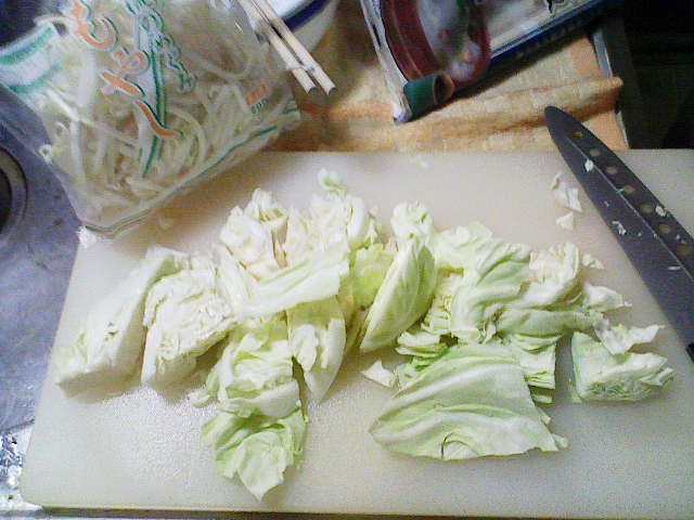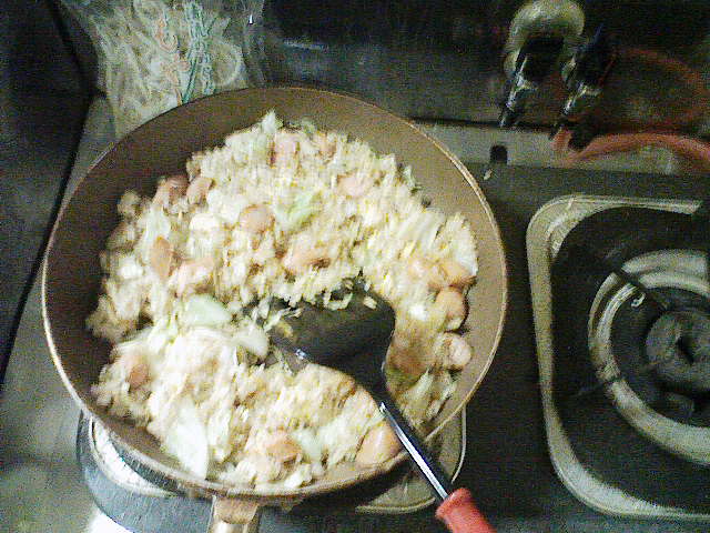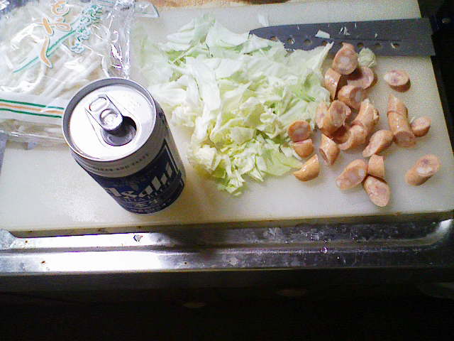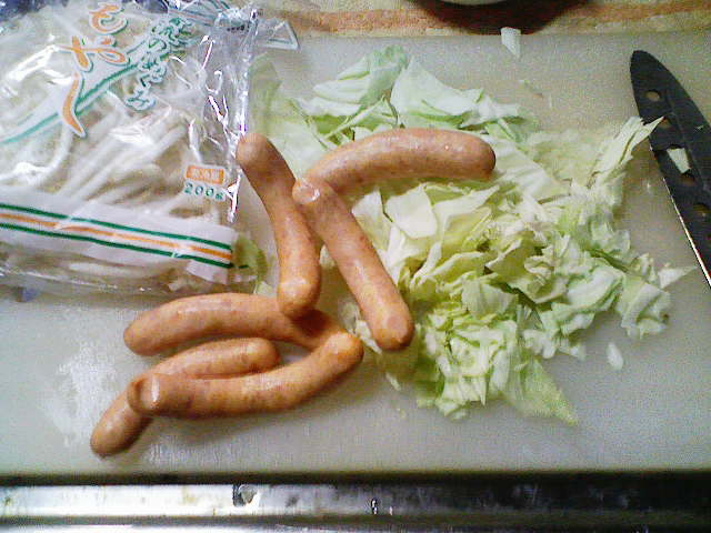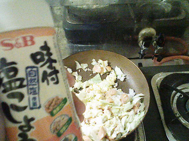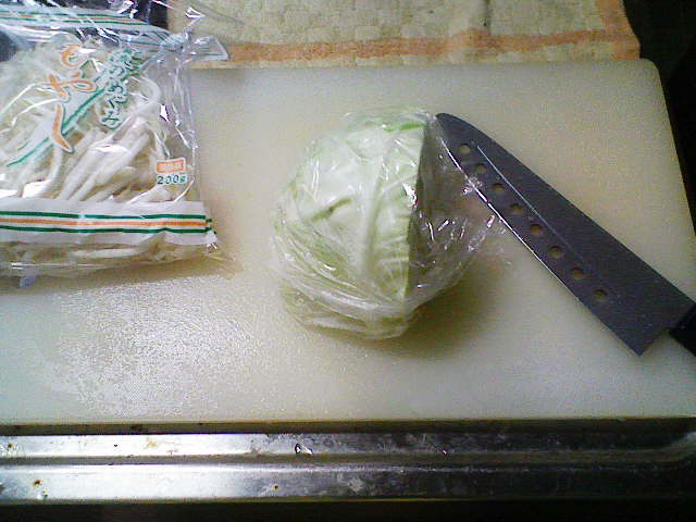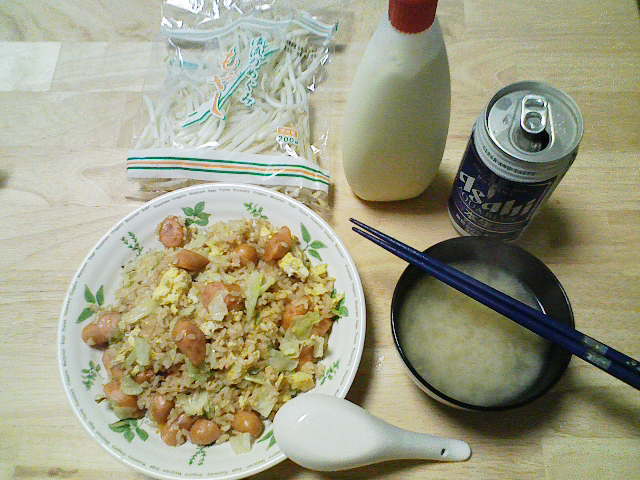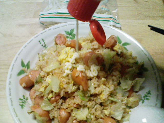 そんなこんなで、今日の夕飯はだいぶ遅くなってしまいました。 今日も、きちんと洗った包丁とまな板を用意。 そして、昨日の残りであるキャベツを用意します。 ラップでくるんで冷蔵庫に入れていたのですが、凍り付いていたのはなぜでしょう? 今日は、昨日よりも細かく、よりざっくりと切り刻んでやりました。 次に用意するのは、粗挽きソーセージくん。 ざっくりバラバラです。 お次は、2000円以上お買い上げで付いてきた卵ワンパックの卵さん。 もう、ここまで来ればオイラが何を作ろうとしているのかわかりますな。 わかりやすくて、スミマセン…… 油を引いたフライパンに卵を どう゛ぁぁぁああああ ごはんべちゃ。 ありゃ。落とすところがずれてしまいました。 で、ソーセージをぶちこんでやり、 醤油で味付け。 塩こしょうをササっと。 後は、中華料理屋のまねごとでもしながら炒めてやります。 で、完成! 作り方がコレであっているのかがわからないので、 マヨネーズで、最終の味付けさ! さて、明日は昨日の残りの肉を解凍させておこうかと思います。 冷凍庫から冷蔵庫に移しておけば、帰ってくるまでに解凍されていて良い感じとゆめこ女史が教えてくれたので、さっそく実践です。 PR