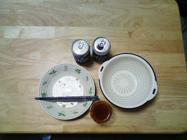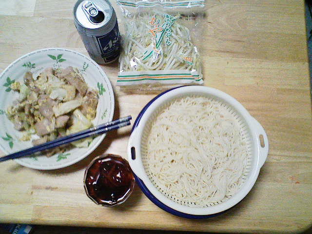 自炊を試みるも本格的な自炊はしたこと無し。 せいぜい、お米を炊いてレトルト食品で腹をごまかす程度でした。 だが、ここに来て自炊を本格的にやってみたら食費も浮いてウハウハじゃね~か! と思い立つ。 こうなる経緯は、来たる税金ラッシュと車検コンボに明日の生活すら見えないトンネルに突入したオイラに、 「オイラ、生活費削ってるんだけど金貯まらね」 と言った言葉に、 「お前は、ぜんぜん生活費を削っていない」 と、世のマダムにこんこんと説教されたのがきっかけ。 何故か、突撃先生やK氏にまで説教される始末。 だったらやってやろーじゃねーかっ! と、半ば逆ギレ状態で、自炊生活一年生のオイラがいかに料理を上達していくかを皆さんに見届けて貰いたい。 さて、とりあえず自炊するには今晩何を食べるかを考えるべきなのだろうが、何を作れるかも重要な問題になってくる。 何せ、本格的に何かを炒めたりとかやったことが無いオイラはマダム達にオイラでも簡単に作れる料理は、何かと聞いてみる。 その中でマダム達が導き出した結論は、野菜炒めだそうだ。 なるほど、確かに肉と野菜を焼けば良いだけだからそいつは簡単そうだ。 しかし、彼女たちはこう付け加える。 「何も、これから食材がナーバスな時期に入ろうとしているのに……」 訳せば、 「これから食材が腐りやすいのに、貴様のような素人が料理何てしたら食中毒になるだけだろうが(嘲笑)」 なるほど。 その言葉、オイラに対する挑戦状として受け取ろう。 と言うわけで、本日のメニューは野菜炒めに決定! まずは、K氏が遠方に旅立ってから使う事が殆ど無くなっていた、まな板と包丁を洗う。 うーん。 オイラが、これを使おうとしているなんて何か不思議だ…… まずは、野菜炒めの要キャベツを水で洗いまな板の上に設置。 後は、 ざくざくっと、やったら良いよと聞いたので適当に斬り捨てる。 半分は、ラップして冷蔵庫に入れました。 そうしている間にお湯を沸かし、そうめんを作ります。 こうも暑いと、つるっと流せる食べ物が粋かなと思ったのですよ。 で、ちゃちゃっとそうめん完成! 水で冷やしておきます。 さて、次は肉ですな。 お買い得品でこの量は、実に魅力的でしたの購入してみました。 とりあえず、半分ほど使い、半分はラップして冷凍庫に。 ゆめこ女史が、肉はラップして冷凍しておいた方が良いと教えてくれたので助かりました。 以前は、そのまま冷蔵に入れておいて腐らせてしまった事があるので…… 食材を腐らせるのは愚の骨頂と言っておられる方もおりますので、ここは安全策をとらせていただきます。 ……… 後は、うりゃーっと野菜と肉を炒めてみます。 もちろん塩こしょうは、必須アイテム! ほんで、決めてはこいつ。 2000円以上お買い上げで付いてきた、卵ワンパックの卵さんです。 どりゃぁああああああ いきおい良くぶっかけて後は炒めてかき混ぜるだけ~ そして、 完成! 肉野菜炒めとそうめん。 じつに、質素ですが今のオイラの実力なんてこんなもんですよ。 そんなこんなで、自炊初日は何とかおいしくいただけました。 ごちそうさまでした。 簡単な料理の作り方を知っている方、オイラの作り方にミスを発見された方、ツッコミもろもろ、何かありましたら教えてください~