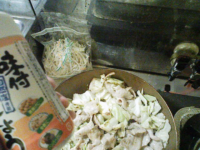 自炊を試みるも本格的な自炊はしたこと無し。 せいぜい、お米を炊いてレトルト食品で腹をごまかす程度でした。 だが、ここに来て自炊を本格的にやってみたら食費も浮いてウハウハじゃね~か! と思い立つ。 こうなる経緯は、来たる税金ラッシュと車検コンボに明日の生活すら見えないトンネルに突入したオイラに、 「オイラ、生活費削ってるんだけど金貯まらね」 と言った言葉に、 「お前は、ぜんぜん生活費を削っていない」 と、世のマダムにこんこんと説教されたのがきっかけ。 何故か、突撃先生やK氏にまで説教される始末。 だったらやってやろーじゃねーかっ! と、半ば逆ギレ状態で、自炊生活一年生のオイラがいかに料理を上達していくかを皆さんに見届けて貰いたい。 さて、とりあえず自炊するには今晩何を食べるかを考えるべきなのだろうが、何を作れるかも重要な問題になってくる。 何せ、本格的に何かを炒めたりとかやったことが無いオイラはマダム達にオイラでも簡単に作れる料理は、何かと聞いてみる。 その中でマダム達が導き出した結論は、野菜炒めだそうだ。 なるほど、確かに肉と野菜を焼けば良いだけだからそいつは簡単そうだ。 しかし、彼女たちはこう付け加える。 「何も、これから食材がナーバスな時期に入ろうとしているのに……」 訳せば、 「これから食材が腐りやすいのに、貴様のような素人が料理何てしたら食中毒になるだけだろうが(嘲笑)」 なるほど。 その言葉、オイラに対する挑戦状として受け取ろう。 と言うわけで、本日のメニューは野菜炒めに決定! まずは、K氏が遠方に旅立ってから使う事が殆ど無くなっていた、まな板と包丁を洗う。 うーん。 オイラが、これを使おうとしているなんて何か不思議だ…… まずは、野菜炒めの要キャベツを水で洗いまな板の上に設置。 後は、 ざくざくっと、やったら良いよと聞いたので適当に斬り捨てる。 半分は、ラップして冷蔵庫に入れました。 そうしている間にお湯を沸かし、そうめんを作ります。 こうも暑いと、つるっと流せる食べ物が粋かなと思ったのですよ。 で、ちゃちゃっとそうめん完成! 水で冷やしておきます。 さて、次は肉ですな。 お買い得品でこの量は、実に魅力的でしたの購入してみました。 とりあえず、半分ほど使い、半分はラップして冷凍庫に。 ゆめこ女史が、肉はラップして冷凍しておいた方が良いと教えてくれたので助かりました。 以前は、そのまま冷蔵に入れておいて腐らせてしまった事があるので…… 食材を腐らせるのは愚の骨頂と言っておられる方もおりますので、ここは安全策をとらせていただきます。 ……… 後は、うりゃーっと野菜と肉を炒めてみます。 もちろん塩こしょうは、必須アイテム! ほんで、決めてはこいつ。 2000円以上お買い上げで付いてきた、卵ワンパックの卵さんです。 どりゃぁああああああ いきおい良くぶっかけて後は炒めてかき混ぜるだけ~ そして、 完成! 肉野菜炒めとそうめん。 じつに、質素ですが今のオイラの実力なんてこんなもんですよ。 そんなこんなで、自炊初日は何とかおいしくいただけました。 ごちそうさまでした。 簡単な料理の作り方を知っている方、オイラの作り方にミスを発見された方、ツッコミもろもろ、何かありましたら教えてください~
