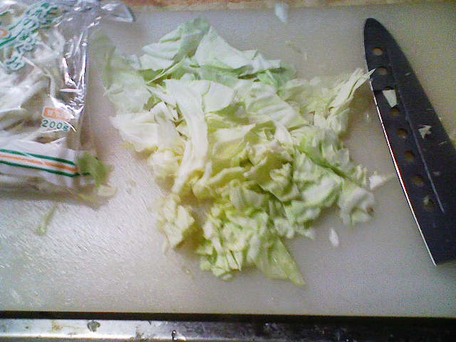 そんなこんなで、今日の夕飯はだいぶ遅くなってしまいました。 今日も、きちんと洗った包丁とまな板を用意。 そして、昨日の残りであるキャベツを用意します。 ラップでくるんで冷蔵庫に入れていたのですが、凍り付いていたのはなぜでしょう? 今日は、昨日よりも細かく、よりざっくりと切り刻んでやりました。 次に用意するのは、粗挽きソーセージくん。 ざっくりバラバラです。 お次は、2000円以上お買い上げで付いてきた卵ワンパックの卵さん。 もう、ここまで来ればオイラが何を作ろうとしているのかわかりますな。 わかりやすくて、スミマセン…… 油を引いたフライパンに卵を どう゛ぁぁぁああああ ごはんべちゃ。 ありゃ。落とすところがずれてしまいました。 で、ソーセージをぶちこんでやり、 醤油で味付け。 塩こしょうをササっと。 後は、中華料理屋のまねごとでもしながら炒めてやります。 で、完成! 作り方がコレであっているのかがわからないので、 マヨネーズで、最終の味付けさ! さて、明日は昨日の残りの肉を解凍させておこうかと思います。 冷凍庫から冷蔵庫に移しておけば、帰ってくるまでに解凍されていて良い感じとゆめこ女史が教えてくれたので、さっそく実践です。 PR